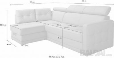 Išmatavimai 225x165x98 cm, aukštis nuleista/pakelta pagalve 82/96cm,